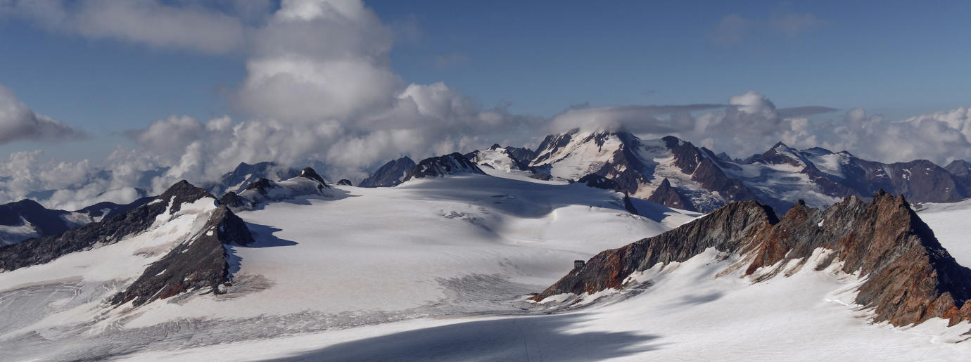 Uitzicht op het Branderburgerhaus vanaf de top van de Fluchtkogel op 3497 meter