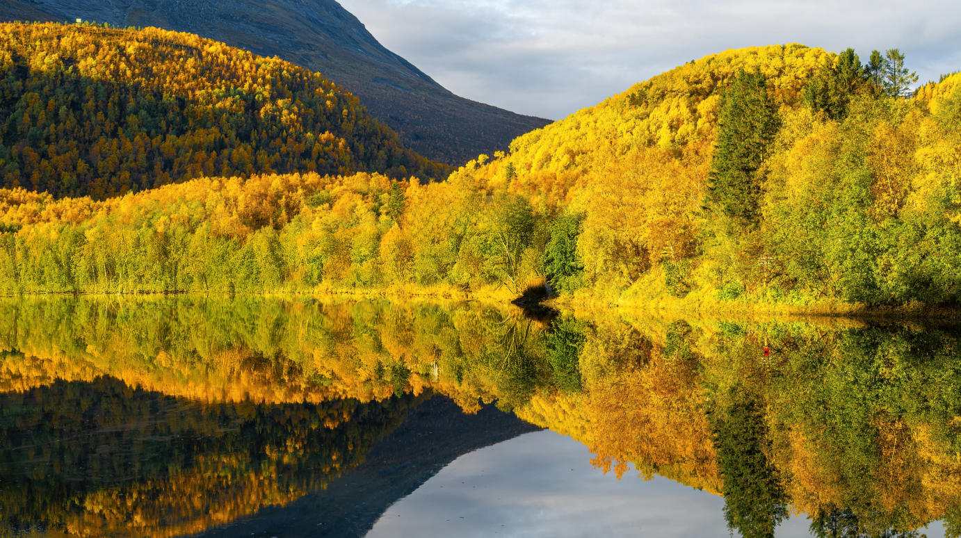 Nationaal park Sjaltvellet-Svartisen is een van de grootste nationale parken in Noord Noorwegen.Het is een van de meest gevarieerde parken, omdat het zowel alpine bergformaties alswel zachtglooiende fjell-berg plateaus en beboste valleien bevat. De gletsjer Svartisen is een centraal onderdeel van het park.Cultureel zijn er bezienswaardigheden van de Saami in het park te vinden. In het park leven onder andere de Veelvraat, de Lynx en de Eland.Wij hebben hier prachtige tochten gelopen in een herfstomgeving die zijn weerga niet kende. Bovendien werden we vele nachten achter elkaar getrakteerd op het Noorderlicht.