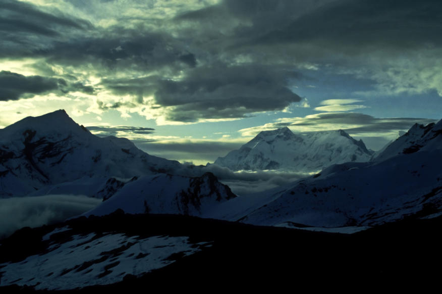op je rug. Voor het eerst een pas over boven de 5000 meter, de Thorung La in de vroege ochtend. 5416 meter hoog !